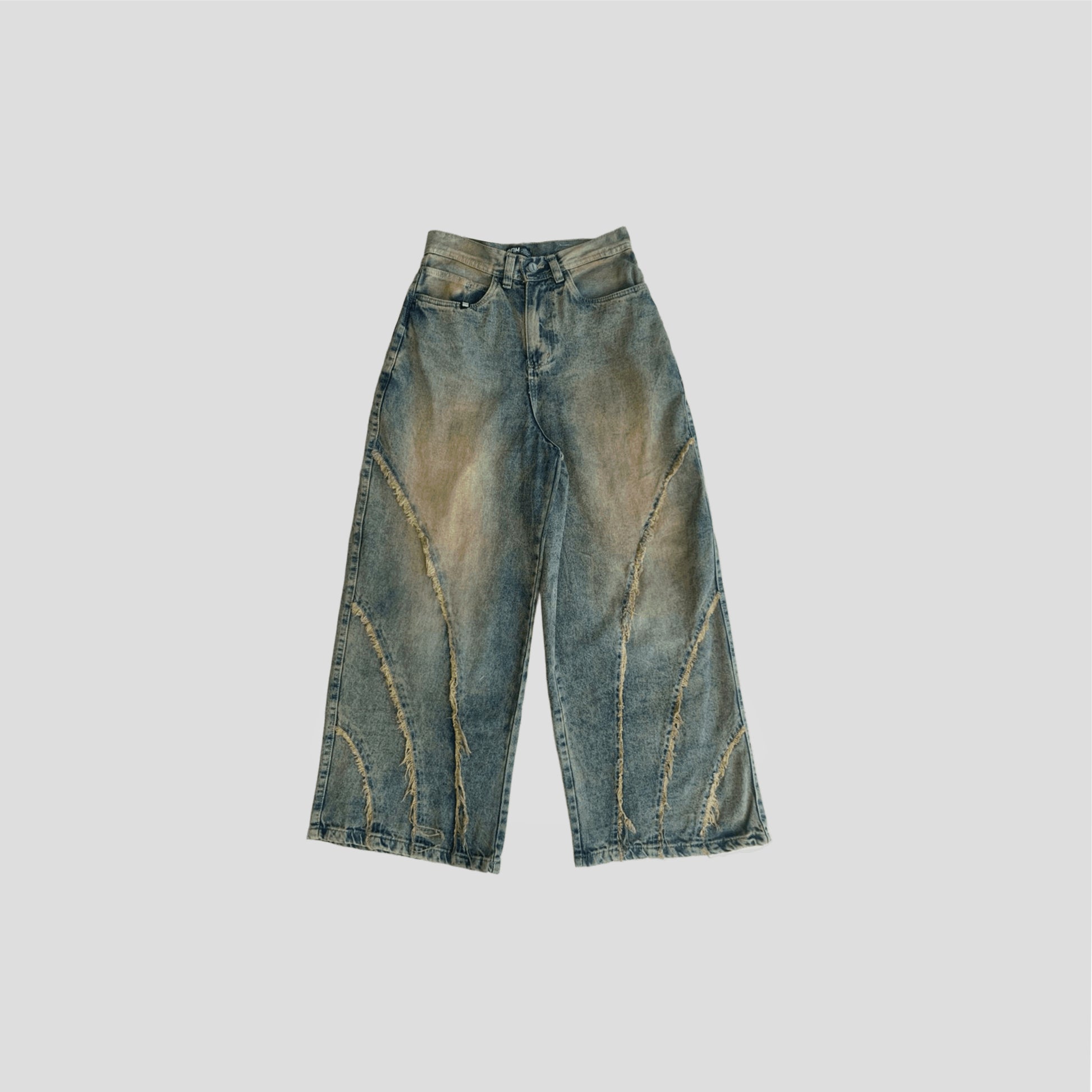 Hecho en denim pesado y con costuras que refuerzan su carácter, este jean es un statement de irreverencia. Cada prenda tiene un acabado único, resultado del proceso experimental de lavado ácido.