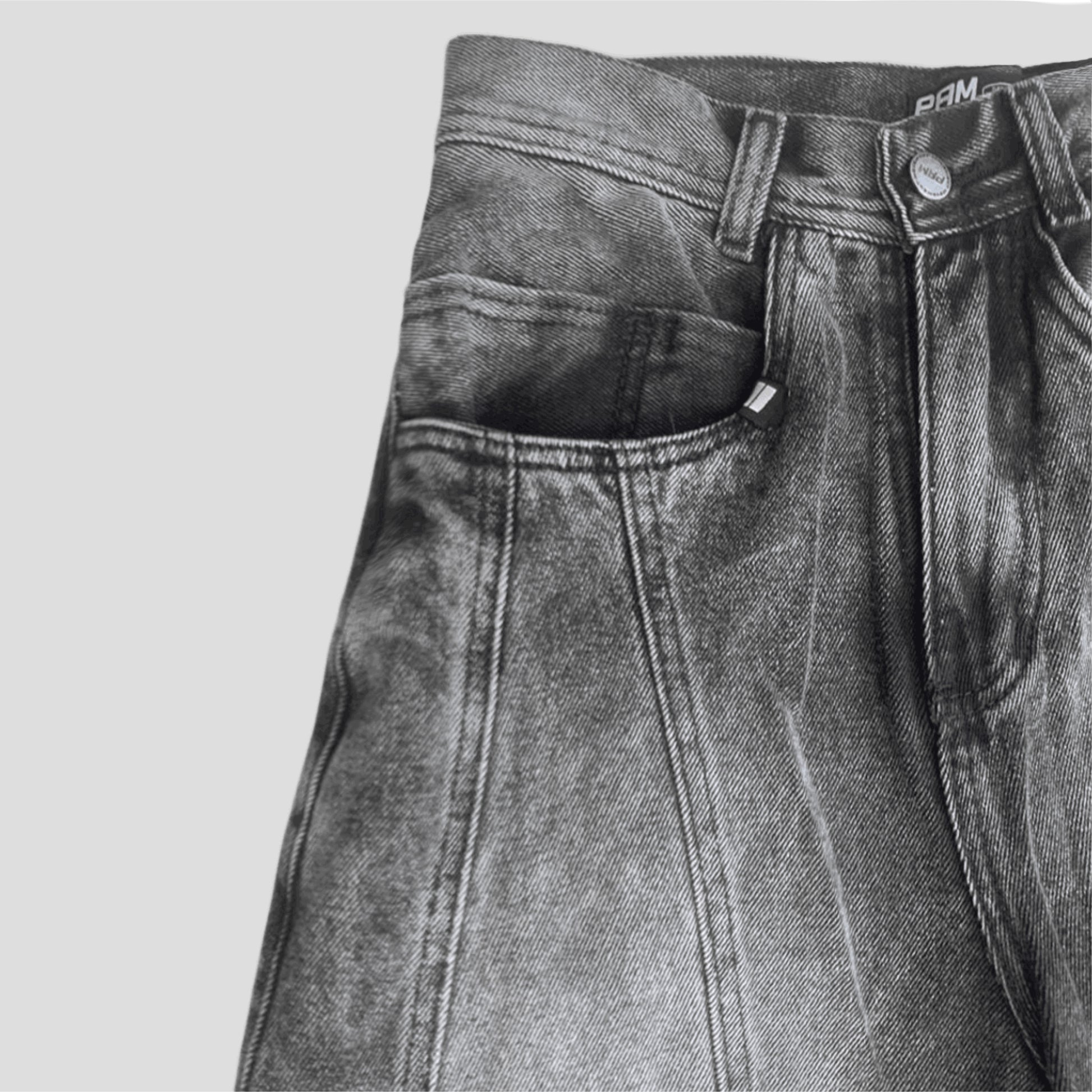 Un baggy de silueta oversized con acabado stone wash en gris oscuro, que le da ese vibe vintage y desgastado. Su diseño con cortes y costuras visibles resalta el carácter urbano y lo convierte en una pieza clave para elevar cualquier fit.